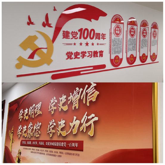学习党史,是我们坚持和发展中国特色社会主义、把党和国家各项事业继续推向前进的必修课,光大科技有限公司大力推进党史学习教育的工作,将党史文化绘上墙,让墙壁“会说话”。在办公区楼道内布置别具一格的党史展板,以生动活泼的方式促进党员、群众“学史明理、学史增信、学史崇德、学史力行”。百年建党路,艰苦铸辉煌,通过党的历史激励员工、传递优良传统,汲取继续奋进的智慧与力量。